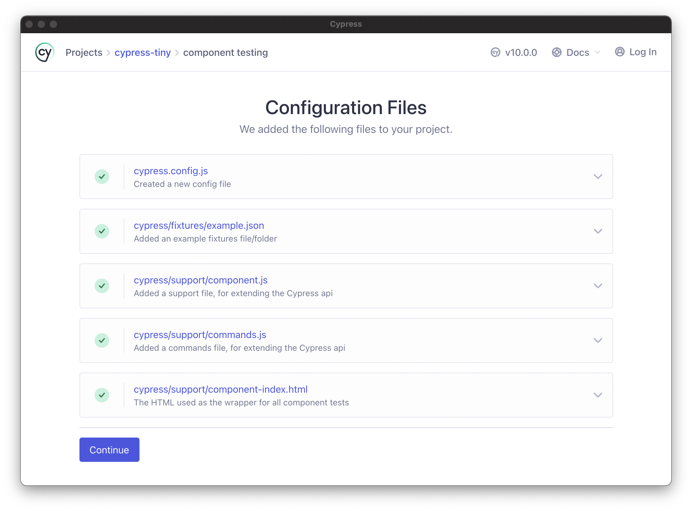 This will launch Cypress's Launchpad and create all the necessary files for getting started.